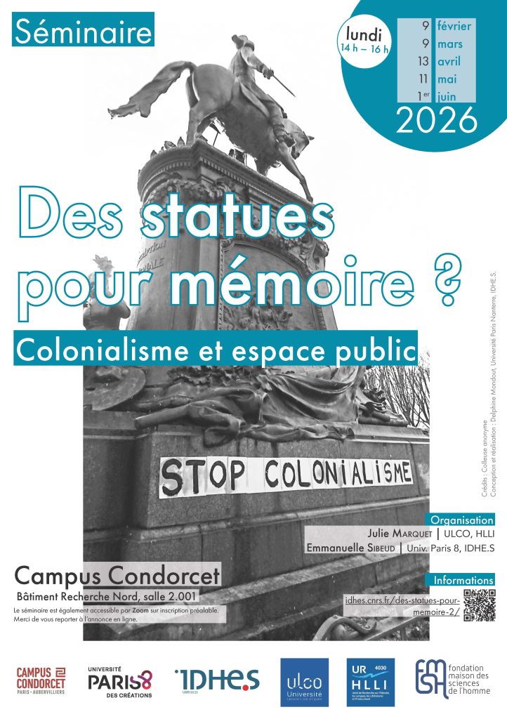 Le séminaire « Des statues pour mémoire ? » aborde la question des contestations de monuments dans l’espace public. Il propose de réunir et de faire dialoguer des chercheurs et des chercheuses de différentes disciplines (histoire, histoire de l’art, sociologie, droit, etc.), mais aussi des acteurs et des actrices du monde associatif ou de la société civile, pour engager la discussion sur la manière dont les monuments participent à produire et à inscrire des mémoires dans l’espace public. Le séminaire envisage pour cela les mémoires dans leurs dimensions processuelles, évolutives dans le temps et souvent conflictuelles. L’objectif pour cette première année est double : il s’agit d’abord de poser des jalons théoriques pour l’étude des monuments, avant de présenter des études de cas de statues contestées.